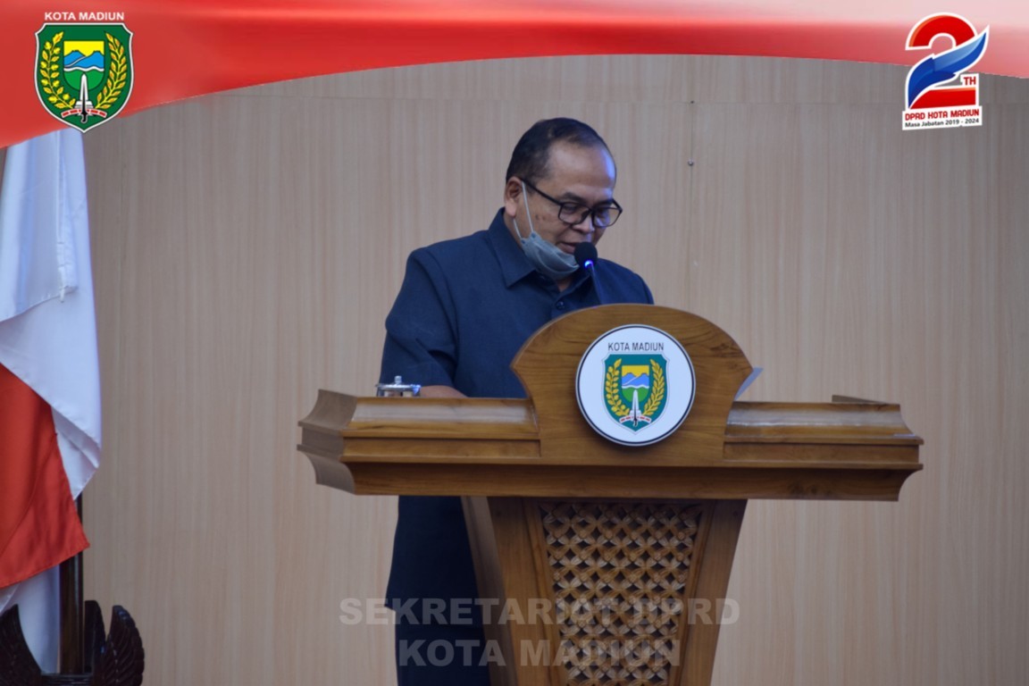 Madiun – Dewan Perwakilan Rakyat Daerah Kota Madiun menyelenggarakan rapat paripurna pada hari Selasa, 21 September 2021 di Gedung paripruna DPRD Kota Madiun.