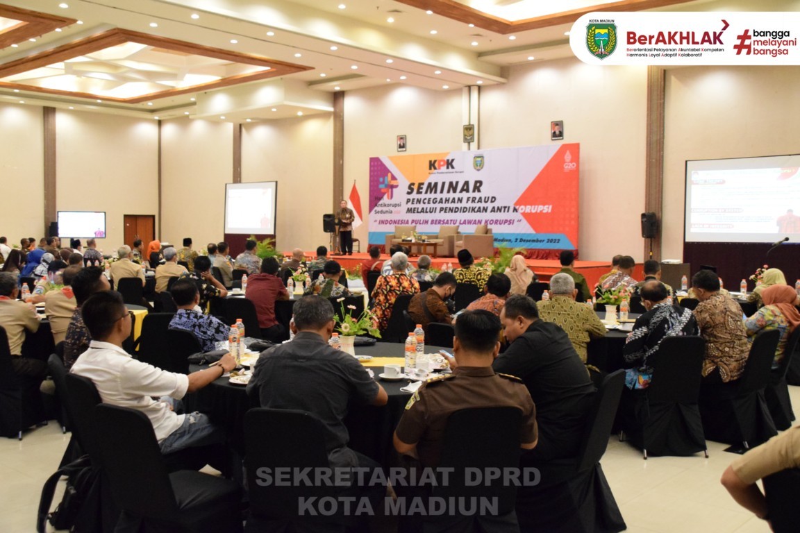 Jumat (01/12) Pimpinan dan beserta Anggota DPRD Kota Madiun menghadiri seminar Hakordia dengan tema “Pencegahan Fraud melalui Pendidikan Anti Korupsi” di Ballroom Sun Hotel Madiun.