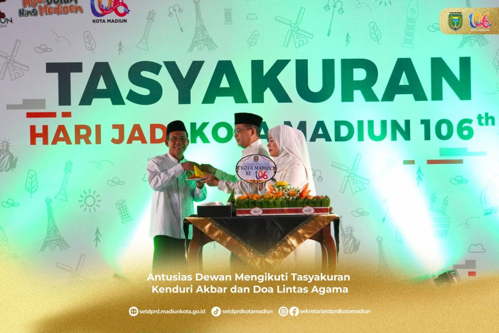 Tasyakuran Kenduri Akbar sekaligus doa bersama lintas agama ini merupakan wujud syukur kepada Tuhan YME. Acara tersebut merupakan salah satu rangkaian peringatan Hari Jadi Kota Madiun yang jatuh pada tanggal 20 Juni besok. Acara tersebut diadakan oleh Pemerintah Kota Madiun yang bertempat di Balaikota Madiun Rabu(19/06) malam. Pimpinan DPRD dan Anggota DPRD turut hadiri kegiatan tasyakuran kenduri dan doa bersama lintas agama bersama Keluarga Besar Pemerintah Kota Madiun dan Masyarakat. (PPIDSetwan)