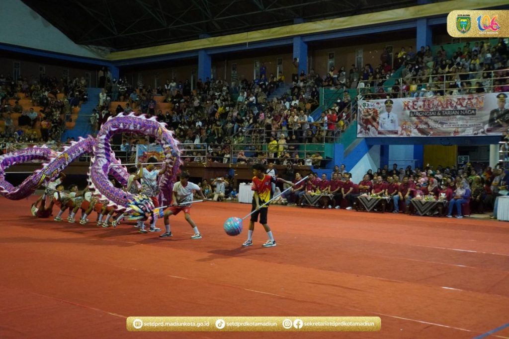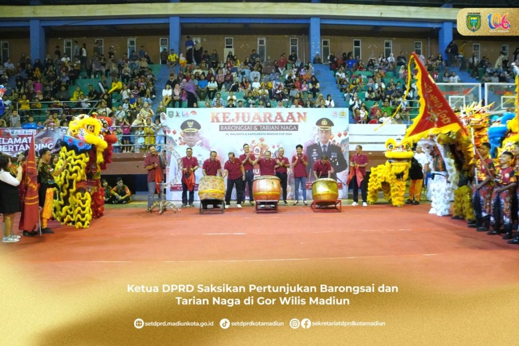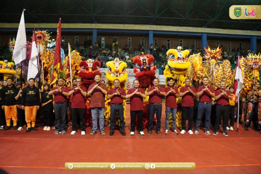 MADIUN-Kali ini Pemkot Madiun berkolaborasi dengan Polres Madiun Kota dengan mengadakan Kejuaraan Barongsai dan tarian Naga piala Pj. Walikota Madiun dan Kapolresta Madiun Kota yang berlangsung di Gor Wilis Kota Madiun, Sabtu (29/6) Malam. Acara tersebut di buka oleh Pj. Wali Kota Madiun Eddy Supriyanto, dihadiri Ketua DPRD Andi Raya beserta Forkopimda dan Kepala OPD Kota Madiun. Perlombaan berlangsung meriah. Tarian Naga dan barongsai sangai memukau para penonton. Bahkan Ketua DPRD Andi Raya membawa Keluarga untuk menyaksikan perlombaan tersebut. Tidak hanya itu, di Gor Wilis juga tersedia berbagai macam stand makanan dan minuman yang mendongkrak UMKM Kota Madiun. (PPIDSetwan)